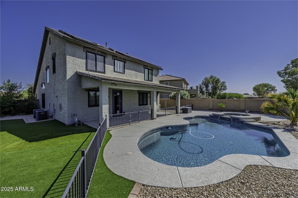 Welcome to this beautifully updated two-story home in the heart of Maricopa, just a short walk to Pacana Park. Priced below the FHA appraisal from April, this home is back on the market after the previous buyer could not performready and waiting for you. Enjoy peace of mind with a new AC installed in 2022, new windows in 2023, & solar to help keep utility bills low. The backyard has a sparkling heated pool and spa, low-maintenance artificial turf, and plenty of space to relax or entertain. Inside, you'll find a functional layout with tasteful updates and natural light throughout. The desirable Glennwilde community has 10 tot lots, two community pools, and scenic walking paths. Close to schools, shopping, and diningthis is Maricopa living at its best.